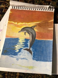 Colored Pencil Drawing of a Jumping Dolphin at Sunset
