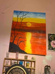 Contemporary Amateur Acrylic Sunset Landscape on Canvas
