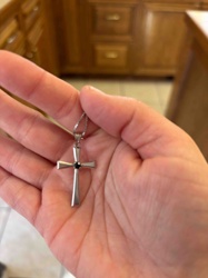 Modern White Metal Tapered Cross Pendant with Dark Gemstone