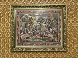 Framed Machine-Woven Gobelin-Style Tapestry 'Village Fete'