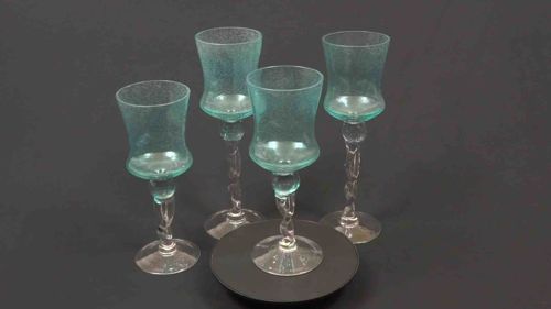 Teal Bubble Glass Stemware Goblets, Set of Four
