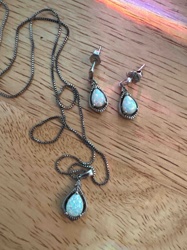 Teardrop Created Opal Pendant Necklace and Stud Earring Set