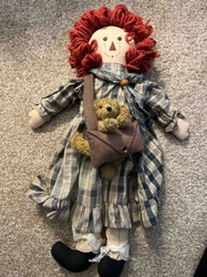 Raggedy Ann Folk Art Doll with Teddy Bear Accessory