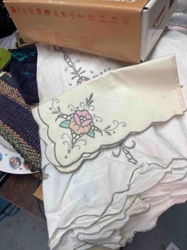 Vintage Embroidered Scalloped Edge Tablecloth with Matching Napkin