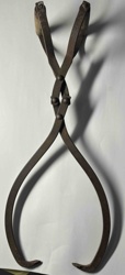 Vintage Forged Iron Ice Tongs with Wooden Handles