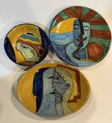 Set of Three Picasso-Inspired Mexican Art Pottery Pieces