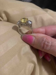 Three-Stone Sterling Silver or White Gold Ring with Yellow and Clear Stones