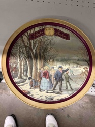 Vintage Currier & Ives Winter Pastime Lithographed Metal Tin Lid