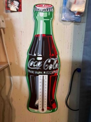 Vintage Coca-Cola Contour Bottle Metal Thermometer Sign