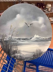 Circular Tondo Coastal Seascape Painting