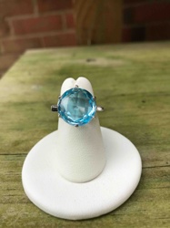 Round Checkerboard-Cut Blue Topaz Sterling Silver Solitaire Ring