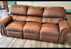 Three-Cushion Brown Faux-Leather Reclining Sofa