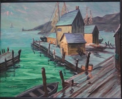 Impressionist Style Oil Painting of a Busy Dock Scene