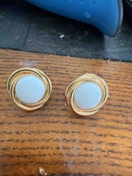 Vintage Gold-Tone and White Cabochon Swirl Stud Earrings