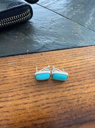 Reconstructed Turquoise and Blue Stone Dangle Earrings