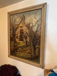 Mid-Century Landscape Oil Painting in Gilt Frame