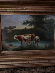 Late Victorian Pastoral Oil Landscape with Cattle