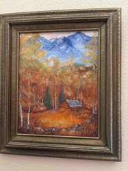 Framed Oil Impressionist Autumn Landscape with Log Cabin