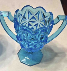 Teal Pressed Glass Two-Handled Sugar Bowl