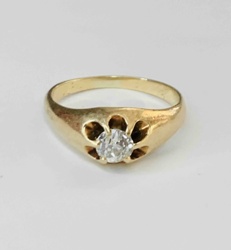 Vintage 14k Gold Old Mine Cut Diamond Gypsy Set Ring