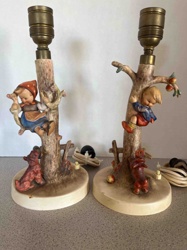 Pair of Vintage Goebel Hummel 'Apple Tree Girl' and 'Apple Tree Boy' Porcelain Figurine Lamps