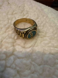 Vintage Gold-Tone Service Award Ring with Turquoise Inlay