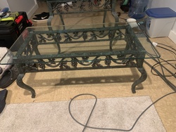 French Provincial Style Wrought Iron and Glass Coffee Table with Grapevine Motif