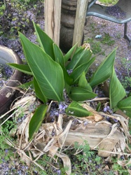 Canna Lily Plant in Weathered Wooden Planter