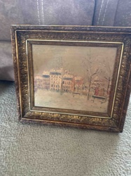 Impressionistic Urban Scene Oil Painting with Ornate Frame