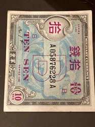 1945 U.S. Military Currency 'B-Yen' 10 Sen Note