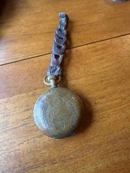 Vintage Engraved Hunter Case Pocket Watch with Leather Fob