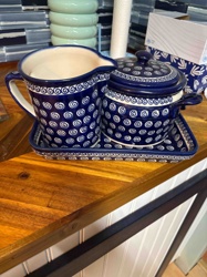 Boleslawiec Polish Pottery Creamer, Sugar Bowl and Tray Set