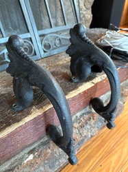 Pair of Antique Victorian Style Cast Iron Hearth Fenders/Andirons