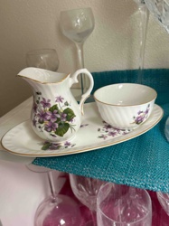 Hammersley & Co. Fine Bone China Victorian Violets Creamer, Sugar Bowl, and Tray Set
