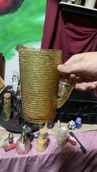 Vintage Amber Crackle Glass Pitcher and Margarita Stemware Set