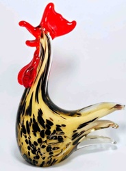 Miniature Hand-Blown Green Glass Rooster Figurine