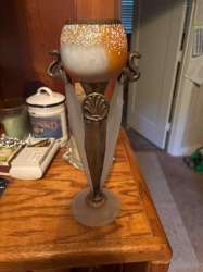 Art Nouveau Style Frosted Glass and Bronze-Finish Centerpiece Vase