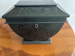 Bombay Company Floral Etched Black Lacquer Tea Caddy Box