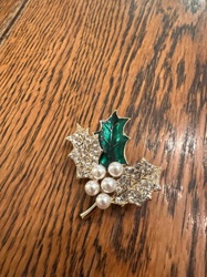 Vintage-Style Holly Leaf Christmas Brooch