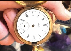 Gold-Toned Hunter Case Pocket Watch with Quartz Movement