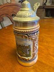 Traditional German Ceramic Beer Stein with Pewter Lid