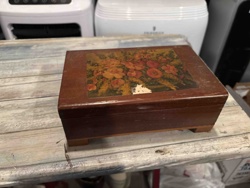 Vintage Wooden Sewing Box with Hand-Painted Folk Art Decoration