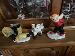 Mid-Century Ceramic Ice Skating Figurines (Boy, Girl, and Cat)