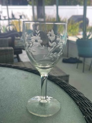 Vintage Wheel-Cut Floral Crystal Wine Goblet