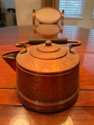 Vintage Hammered Copper Tea Kettle with Wood Handle