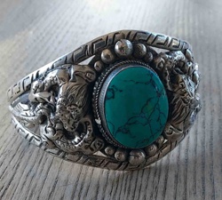 Southwestern Style Sterling Silver and Turquoise Dragon Cuff Bracelet