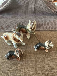 Vintage Ceramic Collie Dog Figurine Family Set with Chains