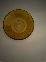 Amber Glass Ruffled Edge Bowl with Daisy & Button Pattern