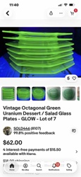 Lot of 7 Vintage Octagonal Green Uranium Glass Dessert Plates