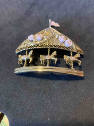 Vintage Gold-Tone Carousel Brooch with Porcelain Roses
